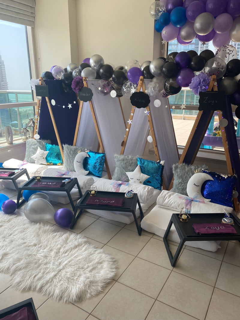 Explore our magical teepee sleepover setups and book your perfect party experience
